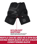 Nylon Dot Mapping: The strategic placement of nylon dot mapping across the palm ensures unparalleled grip, allowing for a steadfast hold on weights, bars, or rods, enhancing your training versatility.