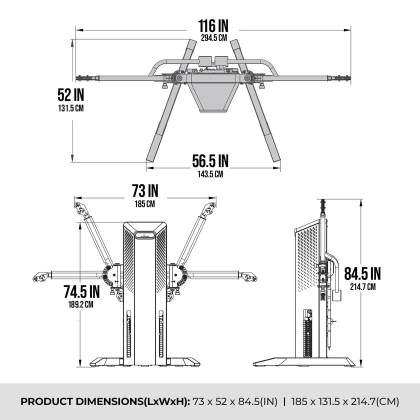 Width: 116 inches (with arms fully extended for maximum exercise range)