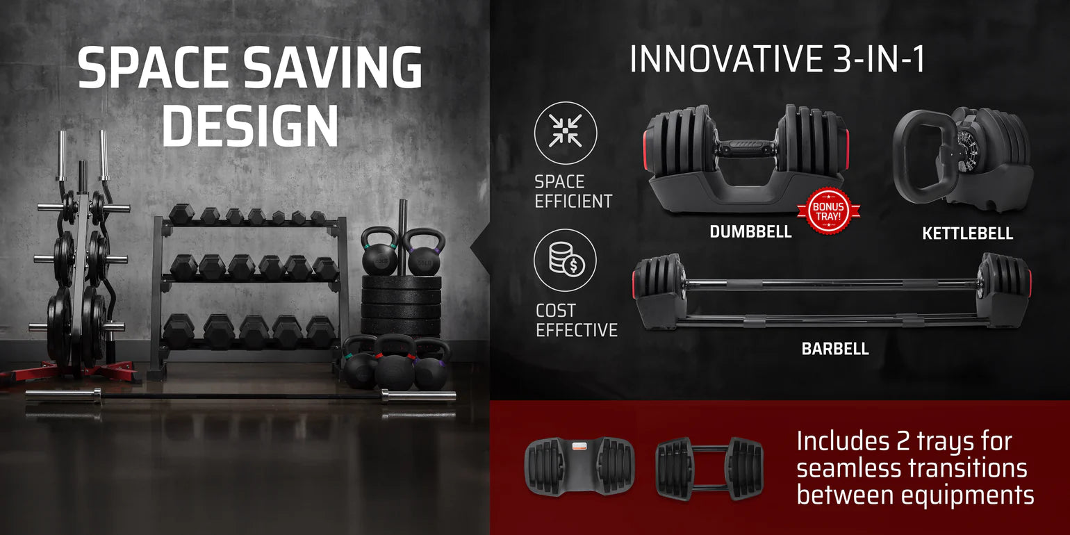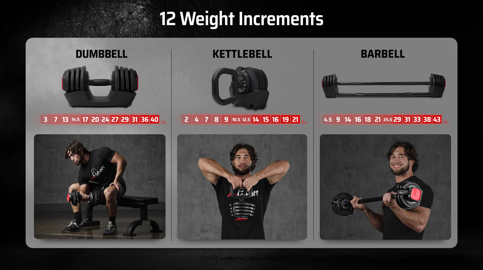 Transform your fitness routine with AmStaff's 3-in-1 adjustable weight system.