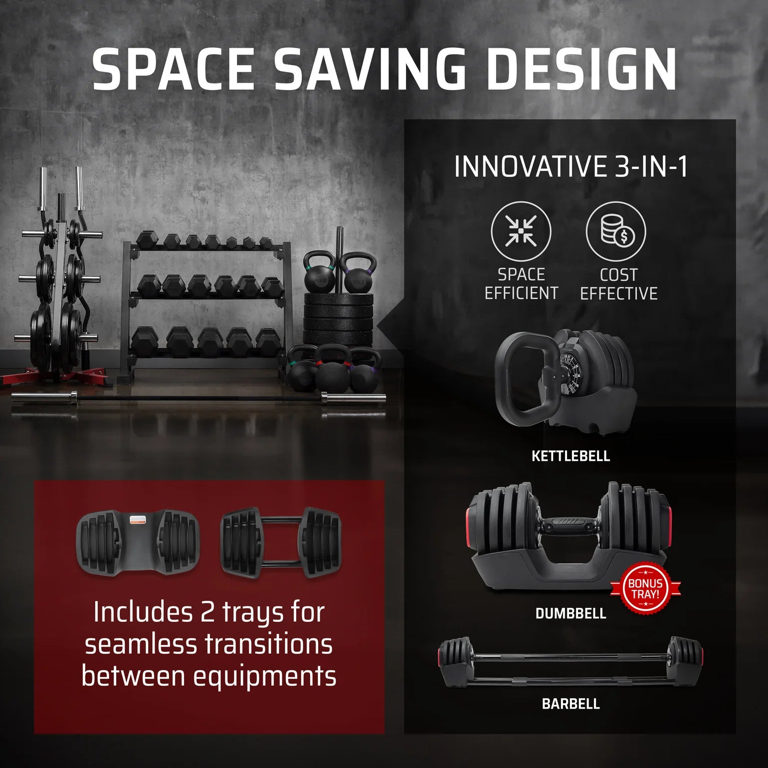 AmStaff Fitness 3-in-1 Adjustable Dumbbell/Kettlebell/Barbell Set (2-43lbs)