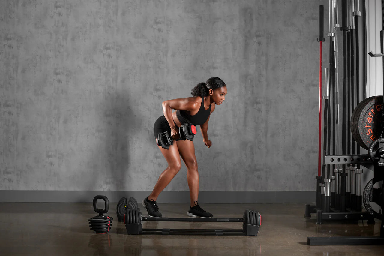 Easily switch between dumbbell, barbell, and kettlebell modes.