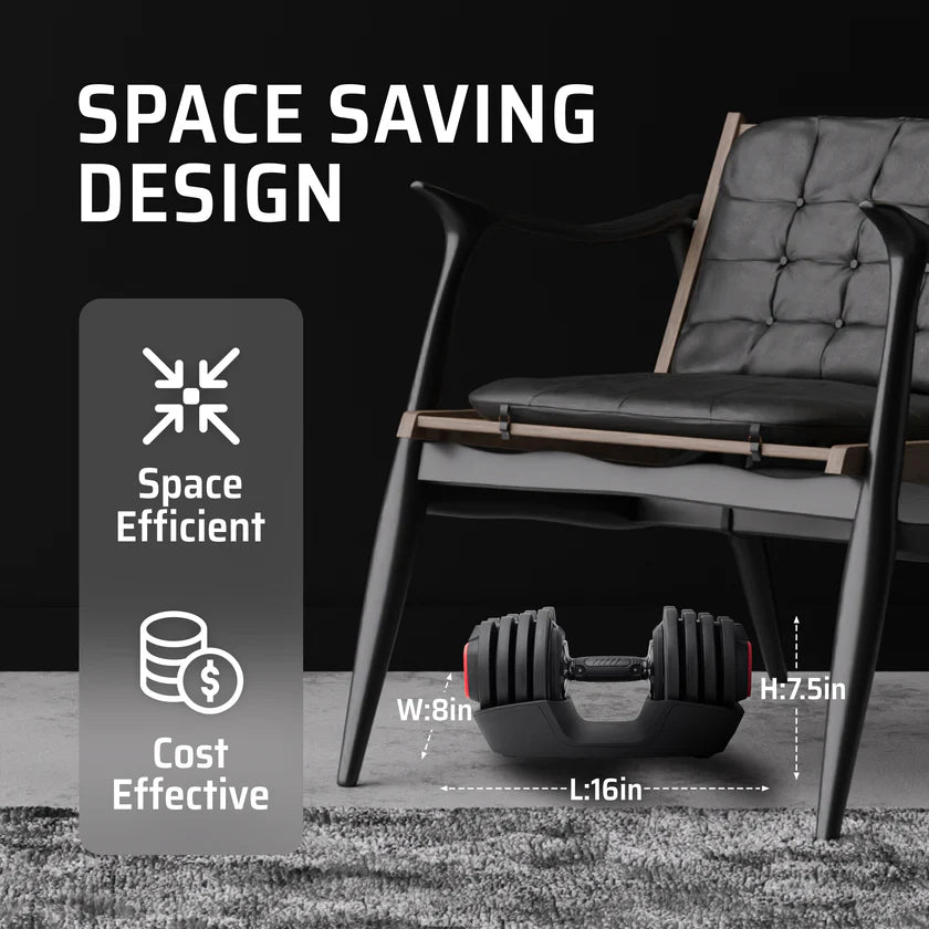 Experience your personalized, safe, and space-efficient workout with our adjustable dumbbells.
