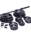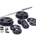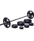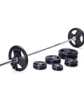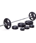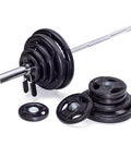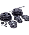 - 300lbs Set Pro - Two Pair: 5; One Pair: 2.5, 10, 25, 35, 45, Spring Collars; 7ft Olympic Bar w/ Needle Bearings (1500 lbs)
