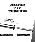 - Compatible avec les plaques de poids olympiques et standard (adaptateurs inclus)