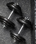 Les poignées d'haltères en acier fileté sont en acier massif au fini zinc noir avec des filetages profonds pour plus de sécurité et de durabilité. Une simple rotation verrouille les plaques.