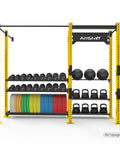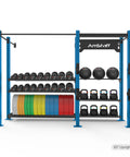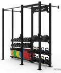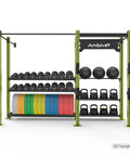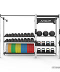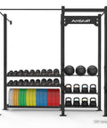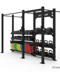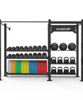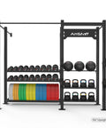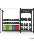 - Solution de stockage complète : équipée pour ranger des haltères, des kettlebells, des ballons muraux et des plaques de pare-chocs.