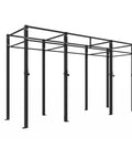 Une configuration courante serait de configurer votre Custom Rig au centre de la salle de sport avec des barres transversales alternées de 2, 4, 5 et 6 pieds pour alterner les racks de squat et les barres de traction dans la mesure où votre espace le permet. que tout ce dont vous avez besoin pour un entraînement est fourni.