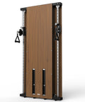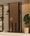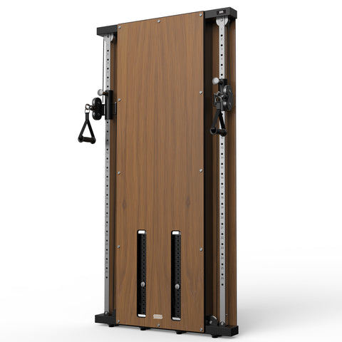 Upgrade your workout with the SpaceSmart Wall-Mounted Functional Trainer. More than sturdy equipment, it's a sleek centerpiece with a premium black oak-textured finish, offering a commercial-grade workout tailored for home or professional use.