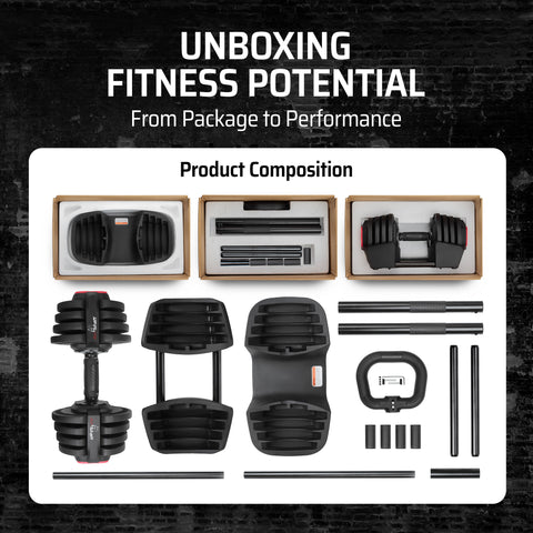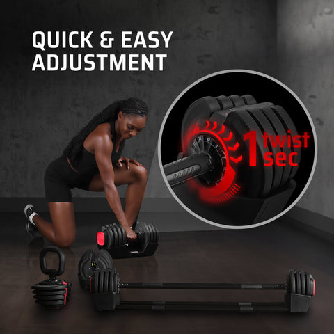 AmStaff Fitness 3-in-1 Adjustable Dumbbell/Kettlebell/Barbell Set (2-43lbs)